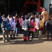 京丹後市立高龍小学校2年生より農場見学に来ていただきました 見るものすべて新鮮で驚いていました。 ミニライスセンターを見学 満足をしてバスに乗って帰っていきました