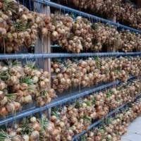 玉ねぎの貯蔵     今年の玉ねぎの糖度を測ることに なんと13度はありました